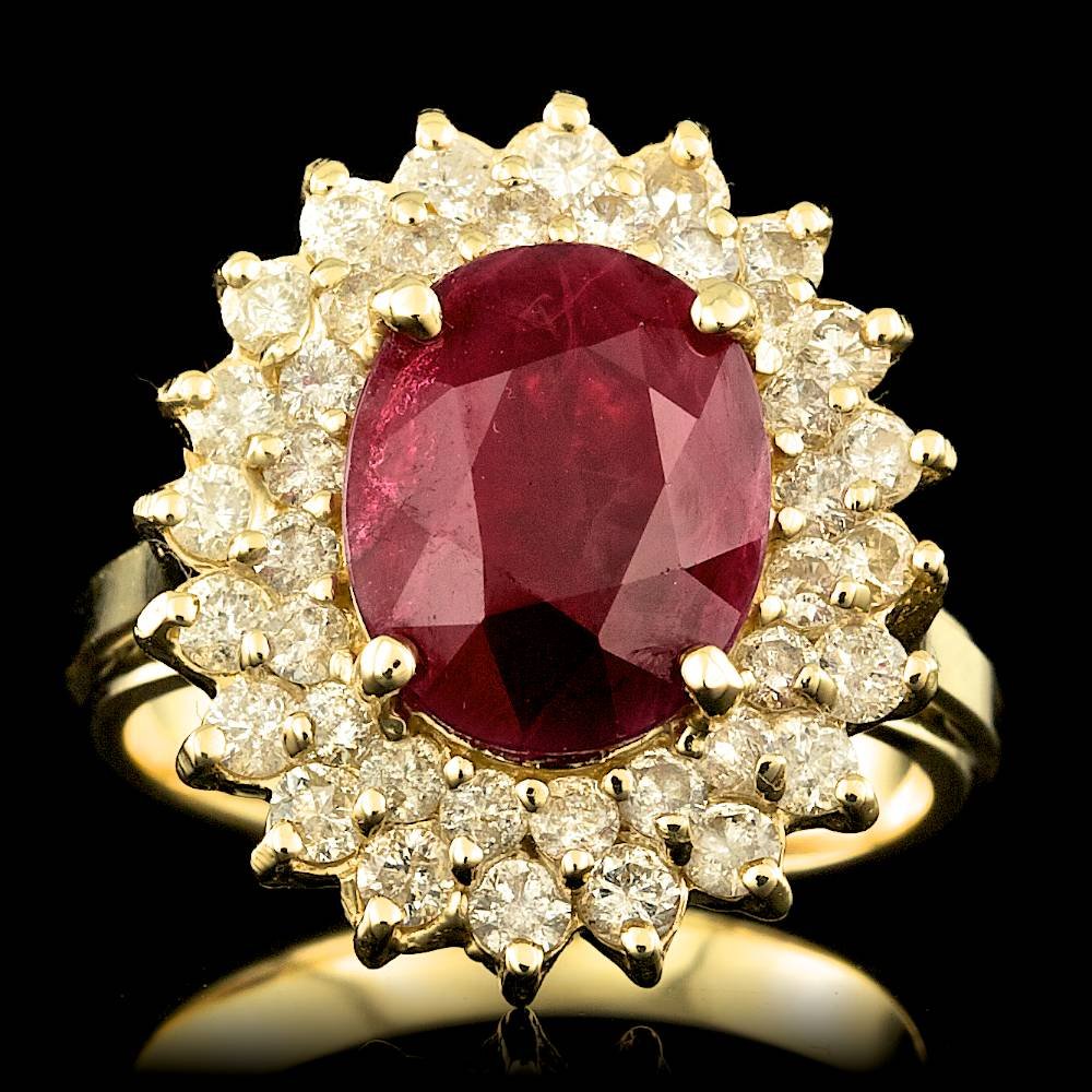 14K Yellow Gold 4.00ct Ruby and 1.51ct Diamond Ring