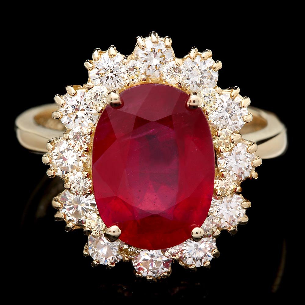 14k Yellow Gold 4.00ct Ruby 0.90ct Diamond Ring