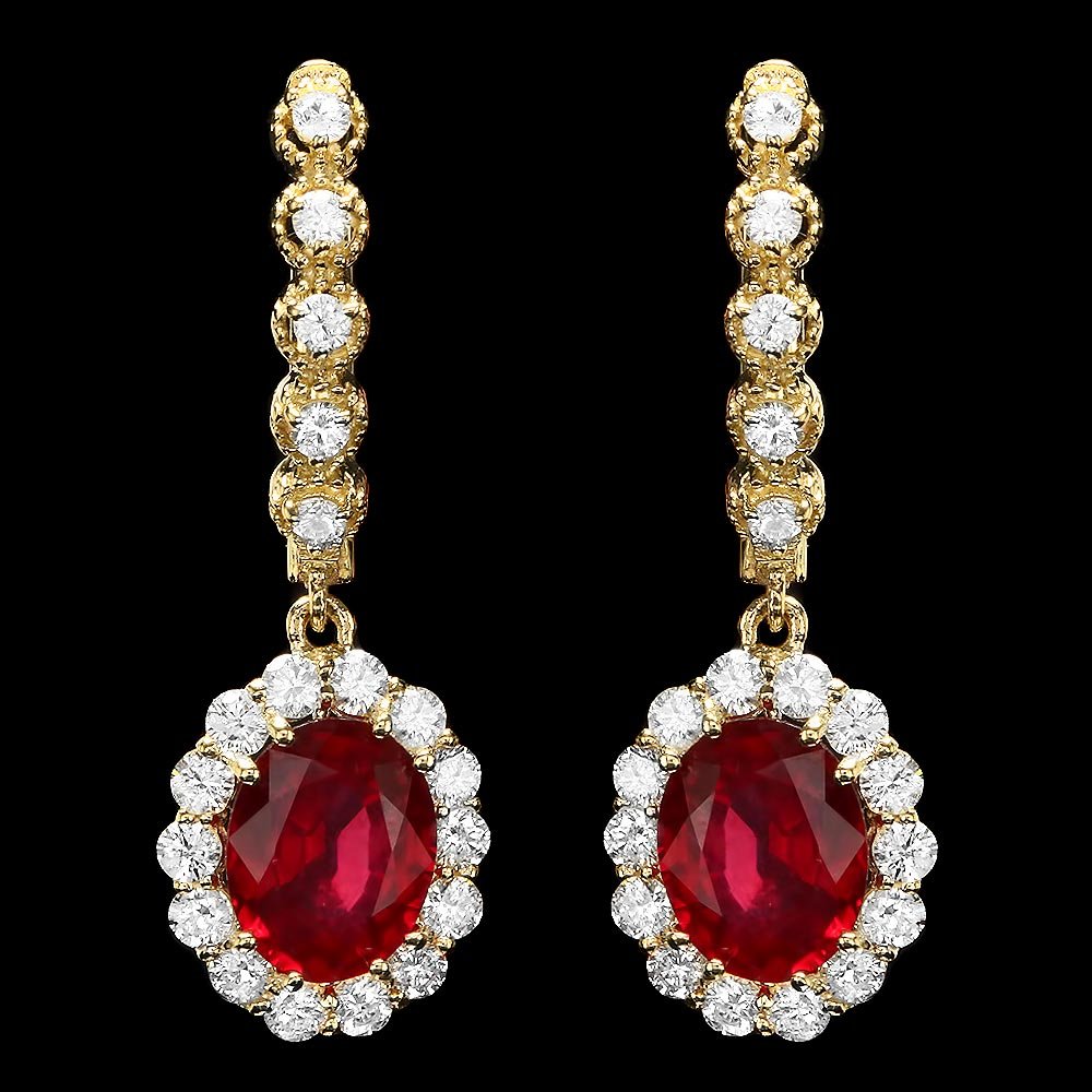 14k Gold 5.3ct Ruby 1.40ct Diamond Earrings
