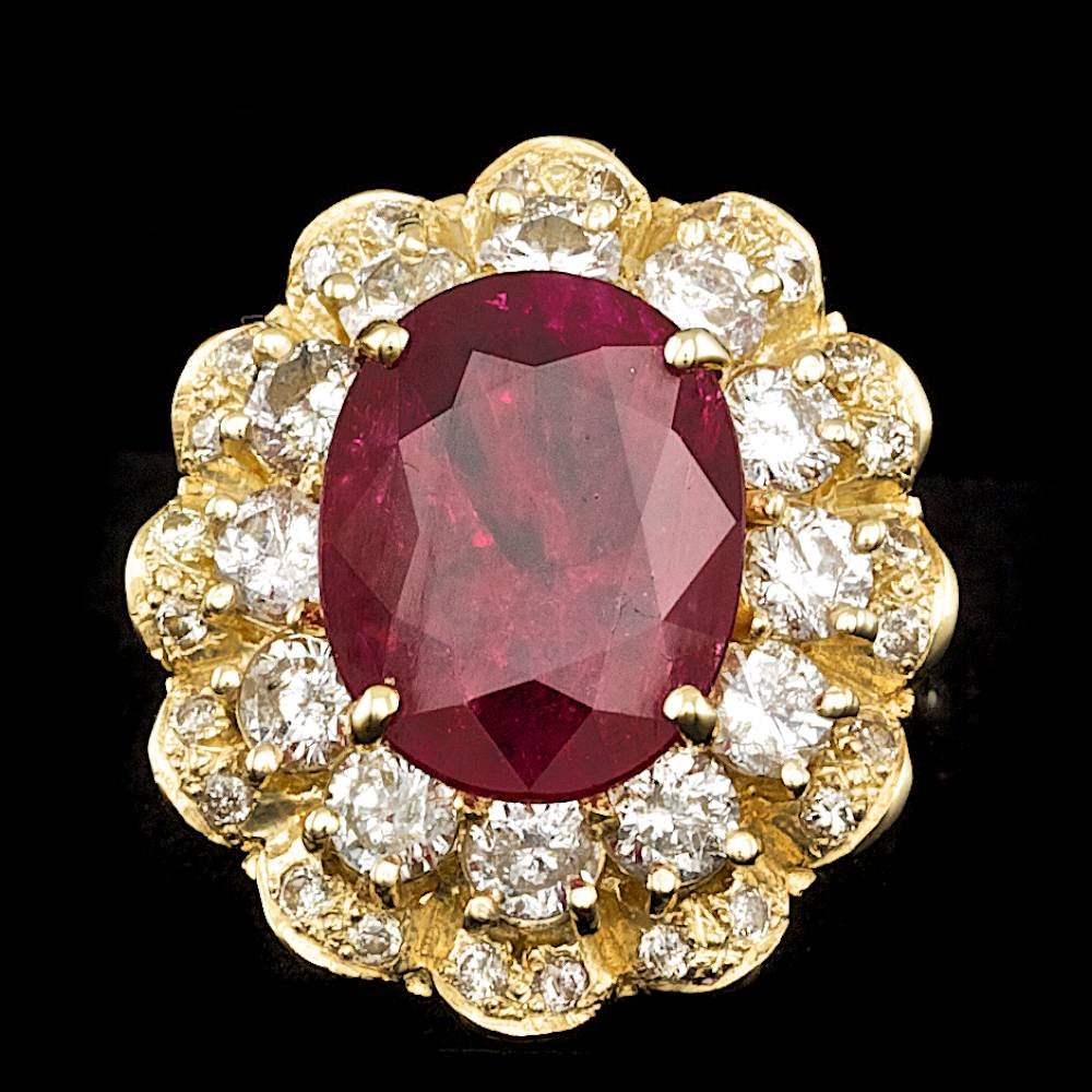 14k Yellow Gold 7.00ct Ruby 2.15ct Diamond Ring