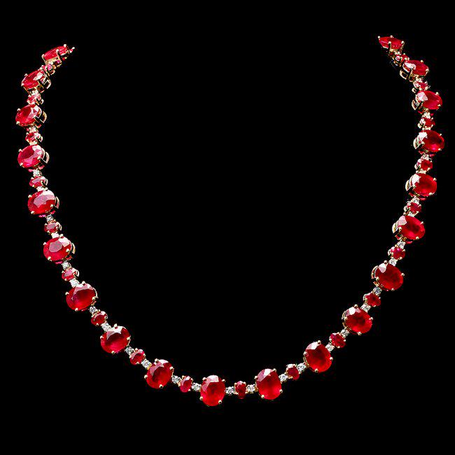 14k Gold 37.00ct Ruby 1.60ct Diamond Necklace