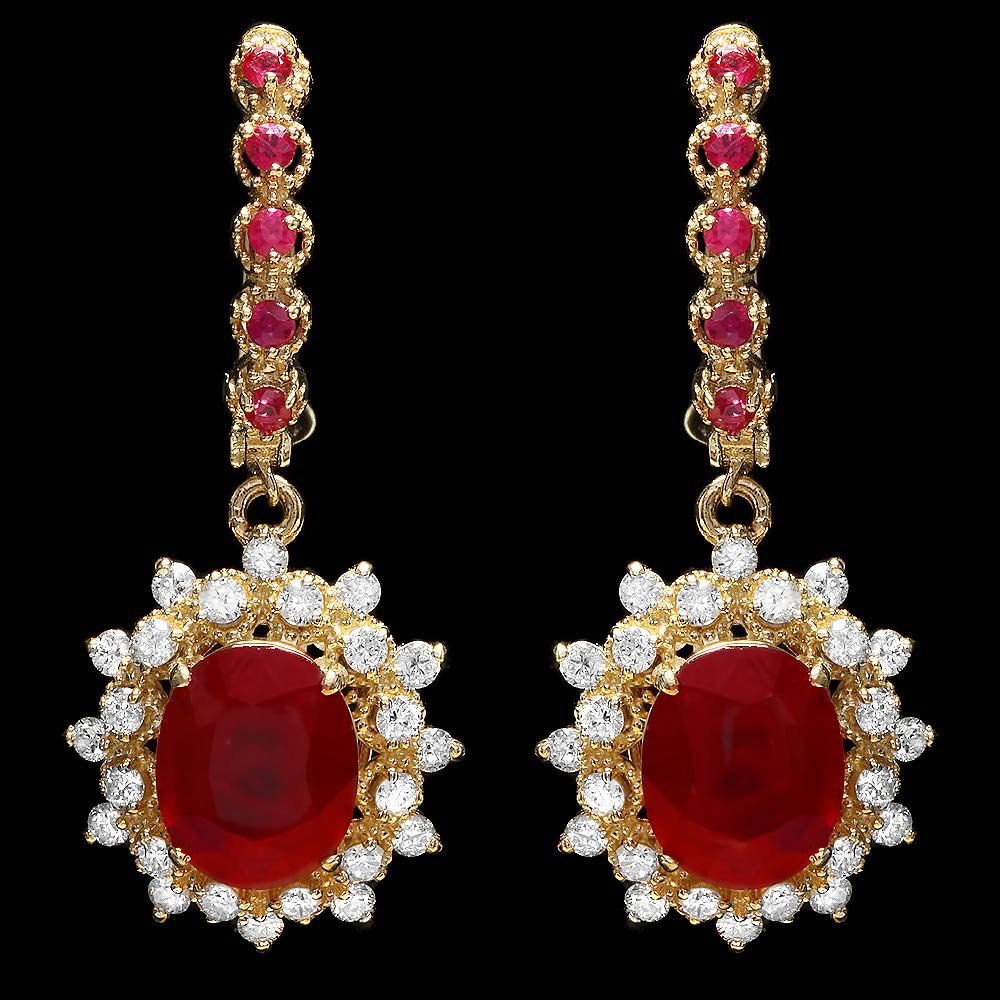 14K Gold 8.07ct Ruby and 0.70ct diamond Earrings