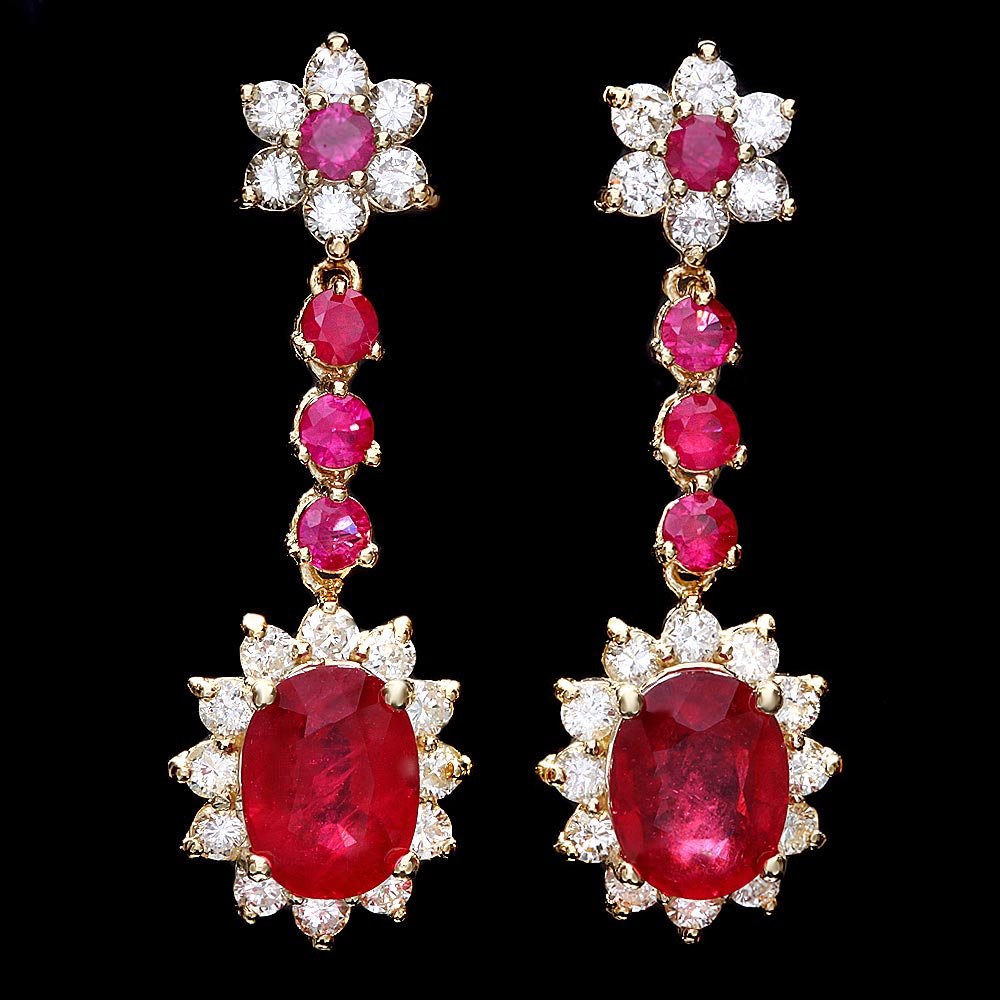 14k Gold 7.00ct Ruby 1.70ct Diamond Earrings