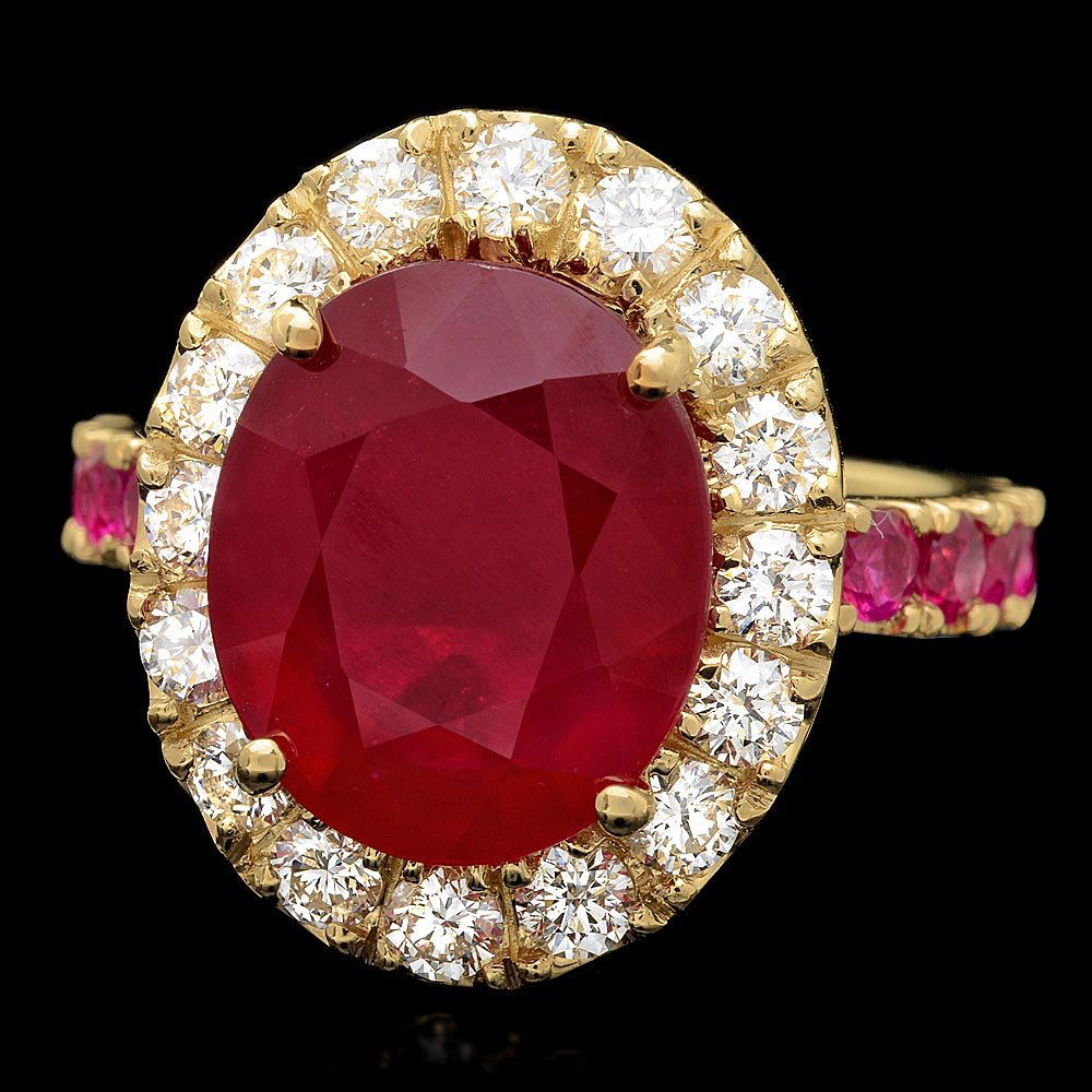 14K Yellow Gold 6.21ct Ruby and 0.88ct Diamond Ring