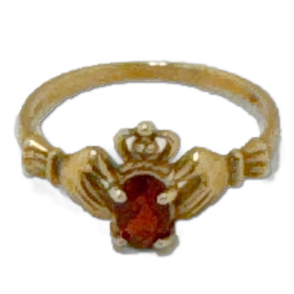 14k Yellow Gold Claddagh Garnet Ring