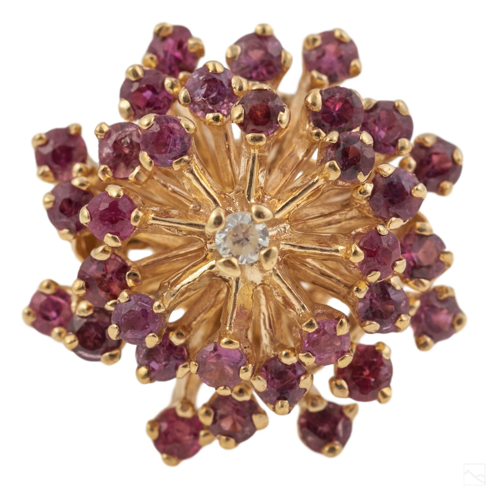 14k Yellow Gold Diamond & Ruby Princess Ring Sz 6
