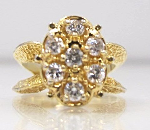 14K Yellow Gold Diamond Cluster Ring Containing