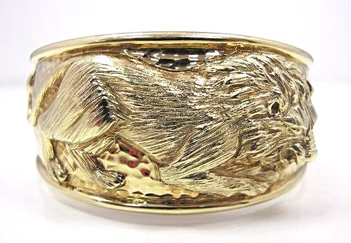 14K Yellow Gold Double Hinged Lion Cuff Bangle