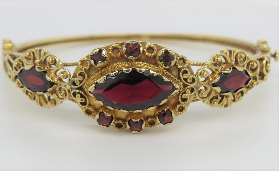Vintage Garnet Gemstone Filigree Bangle Bracelet 14K Yellow Gold, 11.06 GramsChairish Auctions4.5(10.3k)$600