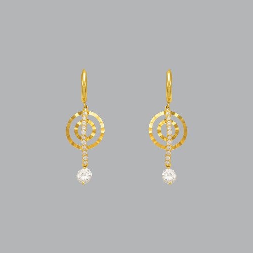 14K YELLOW GOLD LADIES DROP DANGLE DOUBLE CIRCLE