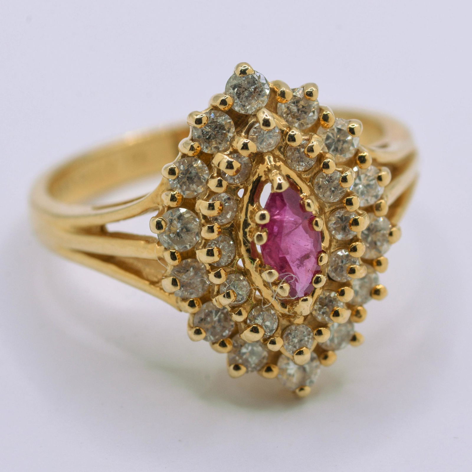 14K Yellow Gold Ruby & Diamond Melee Ring