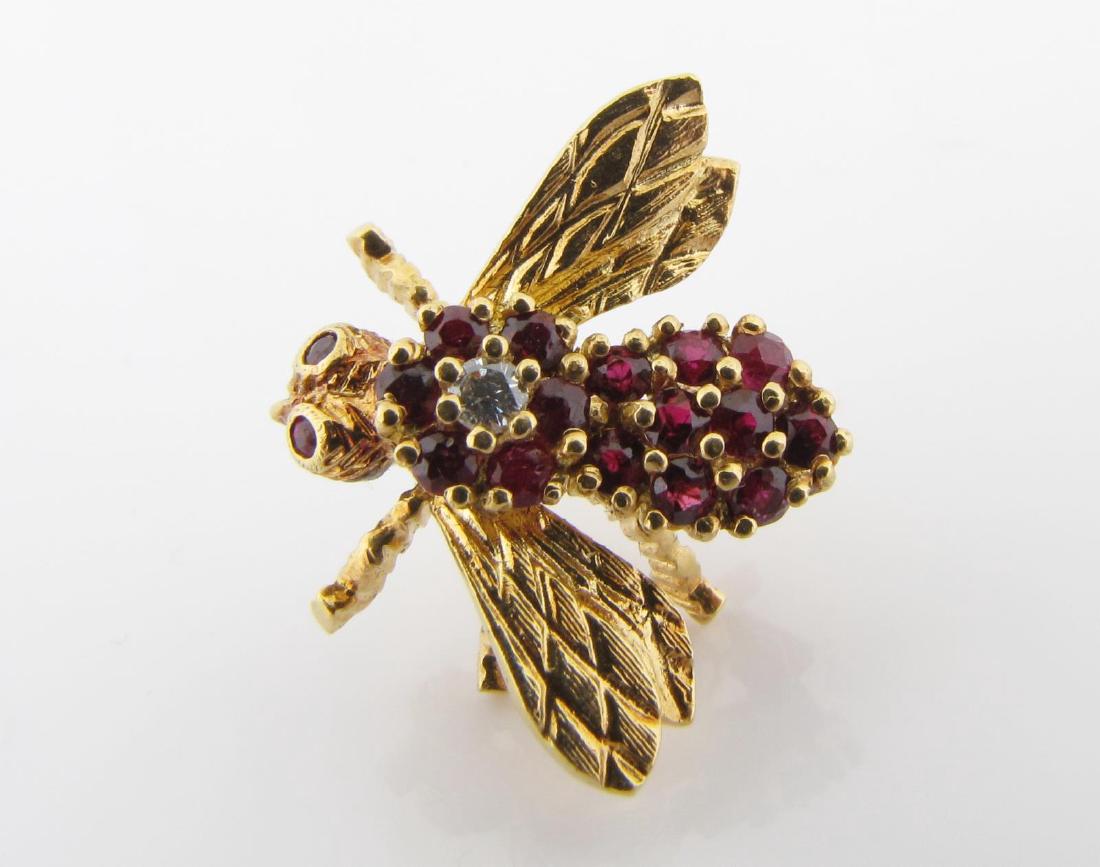 14K Yellow Gold Ruby, Diamond Bee Lapel Pin