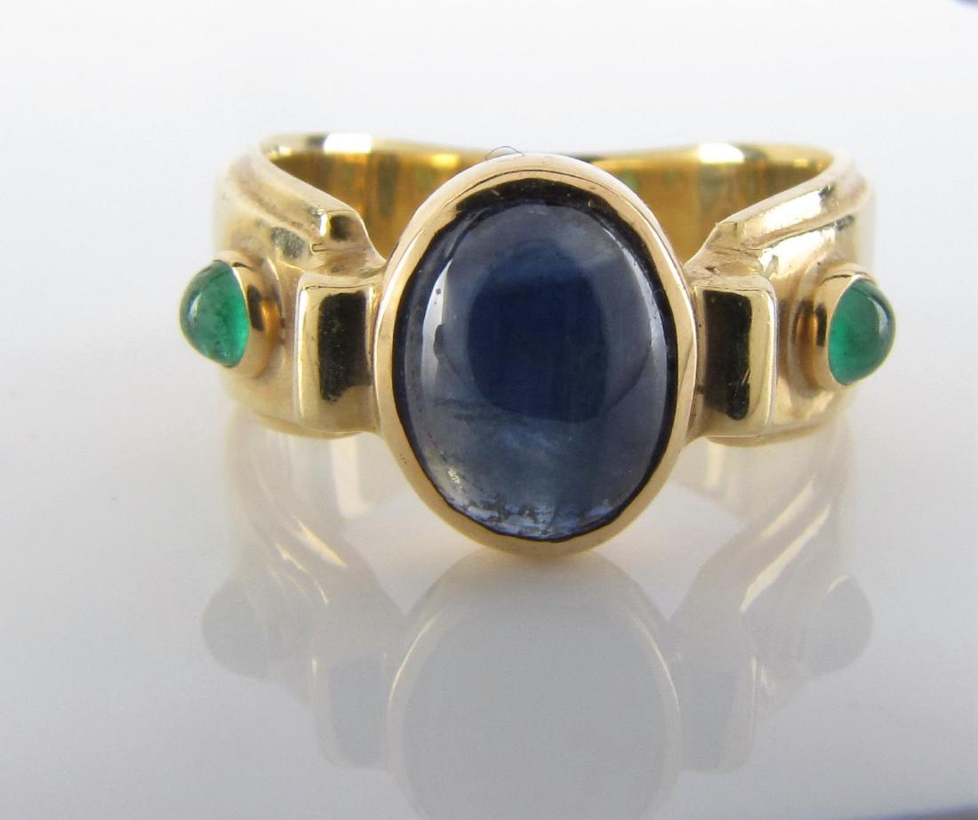 14K Yellow Gold Sapphire, Emerald Ring
