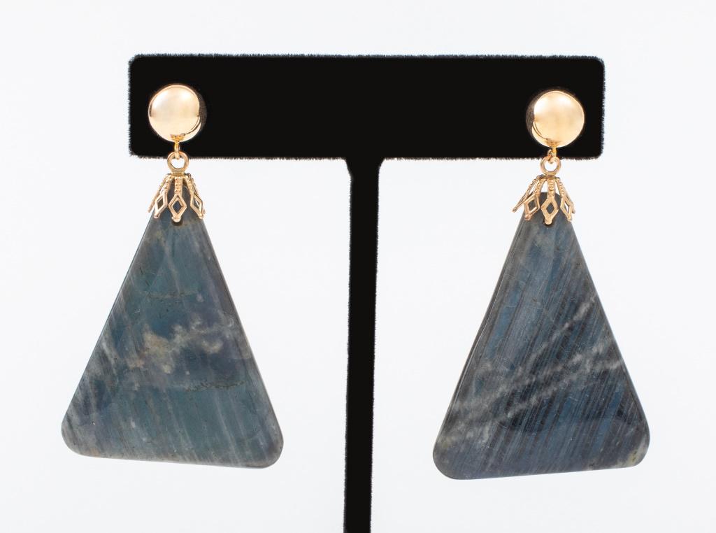 14K Yellow Gold Triangular Labradorite Earrings