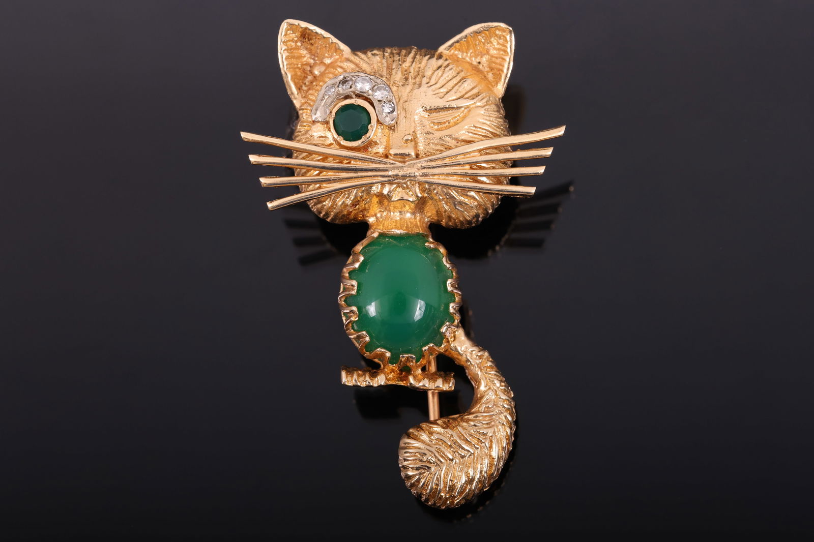 Whimsical Lion Cat Brooch in 18K Yellow Gold with Diamonds Sapphires and EmeraldsBidhaus4.2(842)$1003 days Left