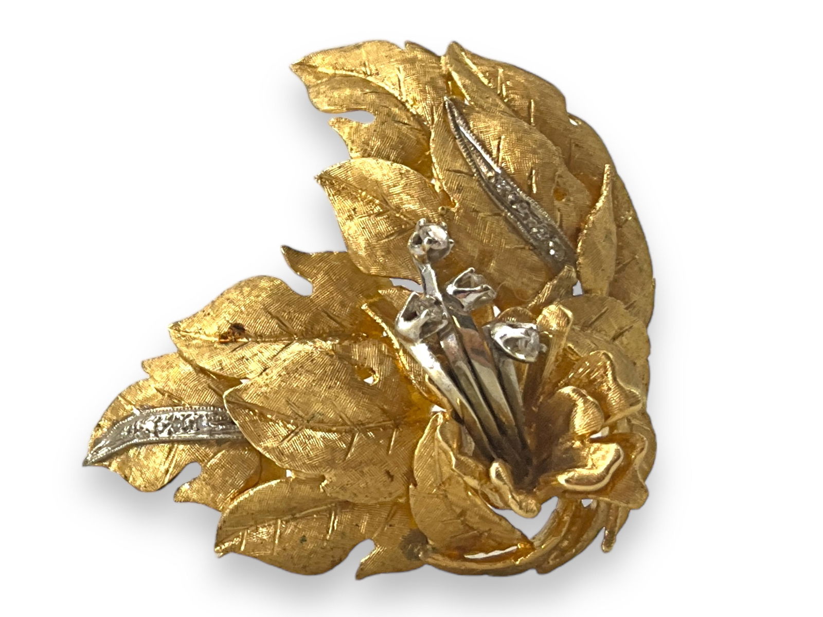 Diamond Leaf Brooch in 18K Gold and Platinum with Baguettes and RoundsMynt Auctions4.4(850)$1005 days Left