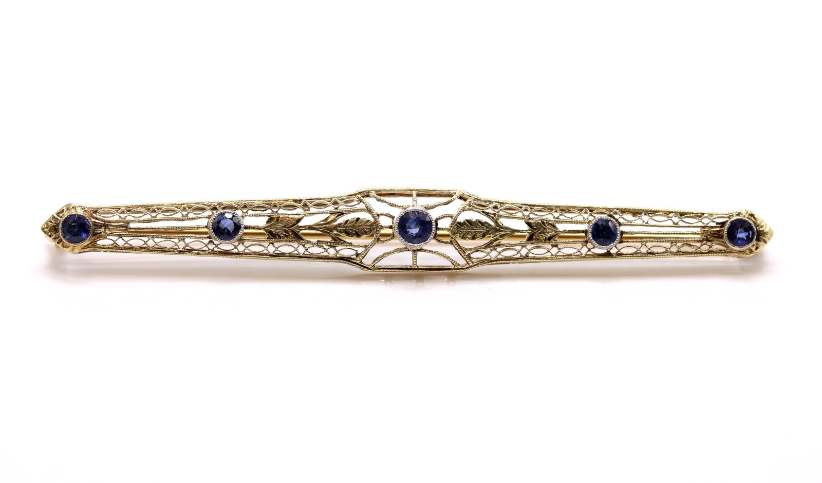 Vintage 1950's Blue Sapphire Diamond Platinum Brooch Pin, .30 CTW, 4.96 GrAntique 14K Gold Platinum Filigree Bar Pin with Diamond Synthetic SapphiresMar 05, 2026Antique Edwardian Krementz Yellow Gold Platinum Sapphire Bar Brooch4 days LeftEdwardian 14K Gold & Diamond Filigree Bar Brooch4 days LeftA Bar Pin Set with Sapphires and PearlsMar 03, 2026Victorian Era Yellow Gold Bar Pin with Old Mine Cushion Sapphire2 days LeftVictorian Era Yellow Gold Bar Pin with Old Mine Cushion Sapphire1 day LeftVictorian Era Yellow Gold Bar Pin with Old Mine Cushion SapphireMar 03, 2026Antique 14k Gold Sapphire & Diamond Bar Brooch9 hrs LeftAntique 18k Yellow Gold Rose Cut Diamond Blue Enamel Pin Brooch 1.8" OG471Mar 19, 2026Beautiful 18k Diamond Sapphire Brooch - 8.55g TWMar 06, 202614kt. Art Deco Blue Sapphire Bracelet and Bar PinMar 11, 2026Victorian 14k Yellow and White Gold Diamond and Sapphire BroochMar 15, 2026A Gold Bar PinMar 03, 2026Antique Edwardian Krementz Yellow Gold Platinum Sapphire Bar Brooch5 days LeftANTIQUE ART DECO 14K WHITE GOLD SAPPHIRE BROOCHMar 07, 2026