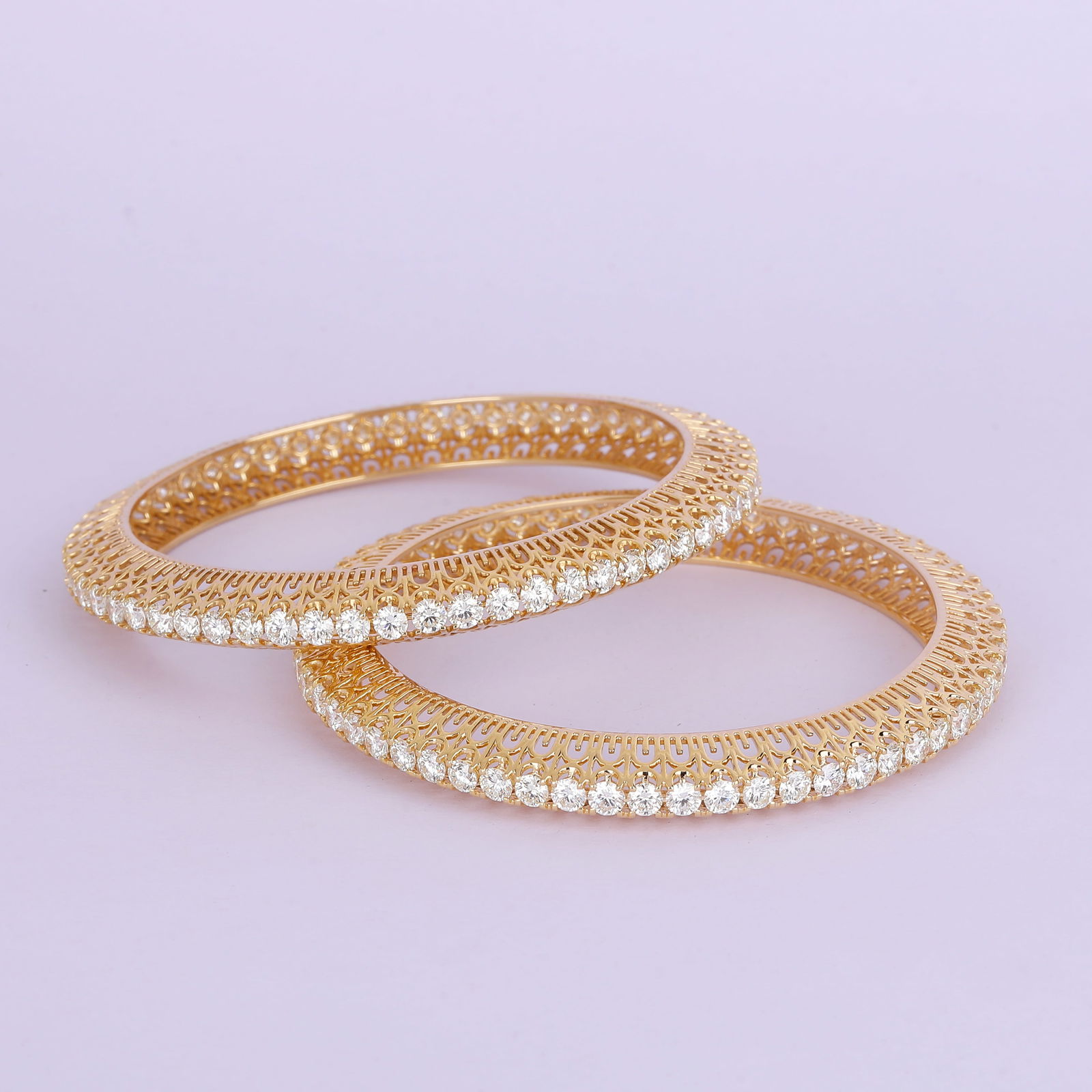 14K/585 Yellow Gold Diamond Bangle Pair