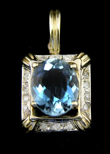 14Kt Blue Topaz-Diamond Pend. Enhancer