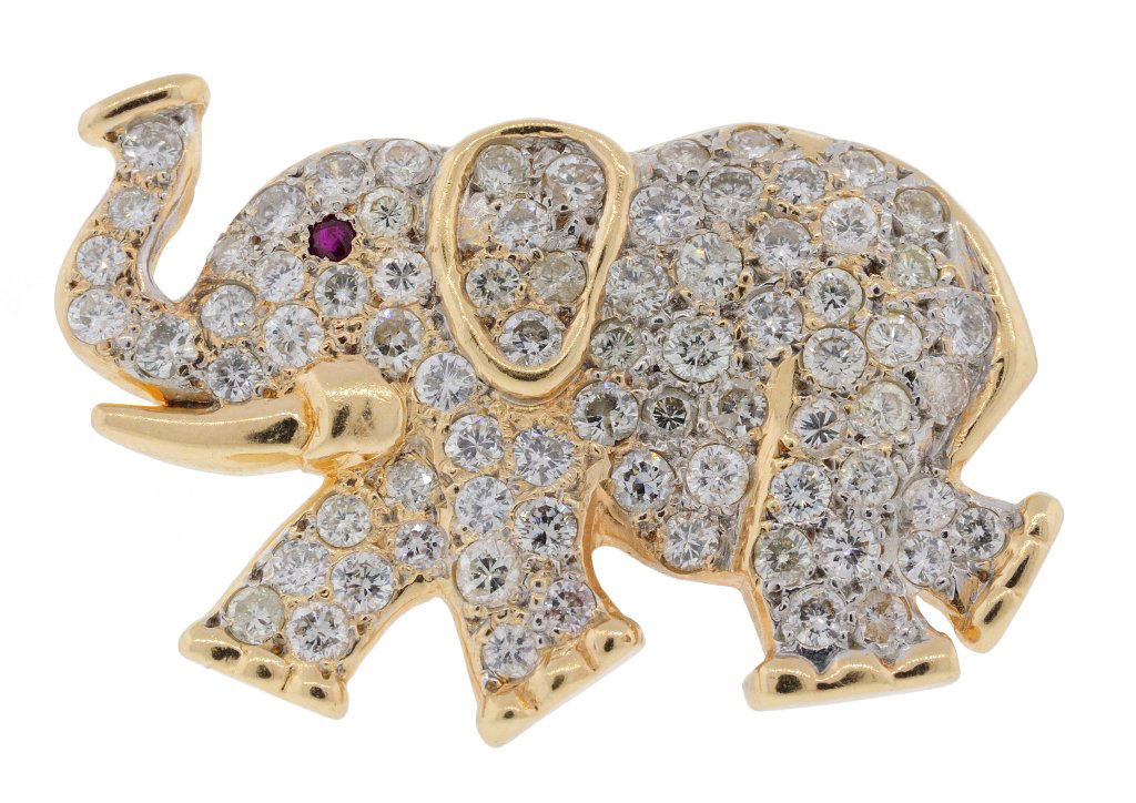 14KT DIAMOND PAVE ELEPHANT BROOCH