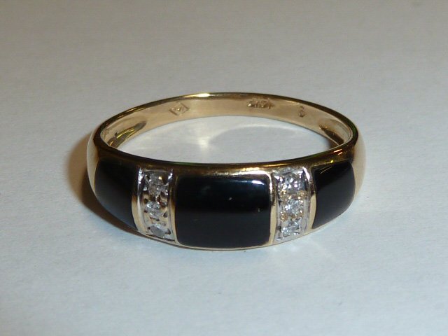 14KT GOLD ONYX AND DIAMOND RING
