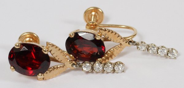 14KT GOLD RUBY & DIAMOND DANGLE EARRINGS
