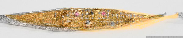 14KT GOLD, RUBY & SEED PEARL LEAF PIN