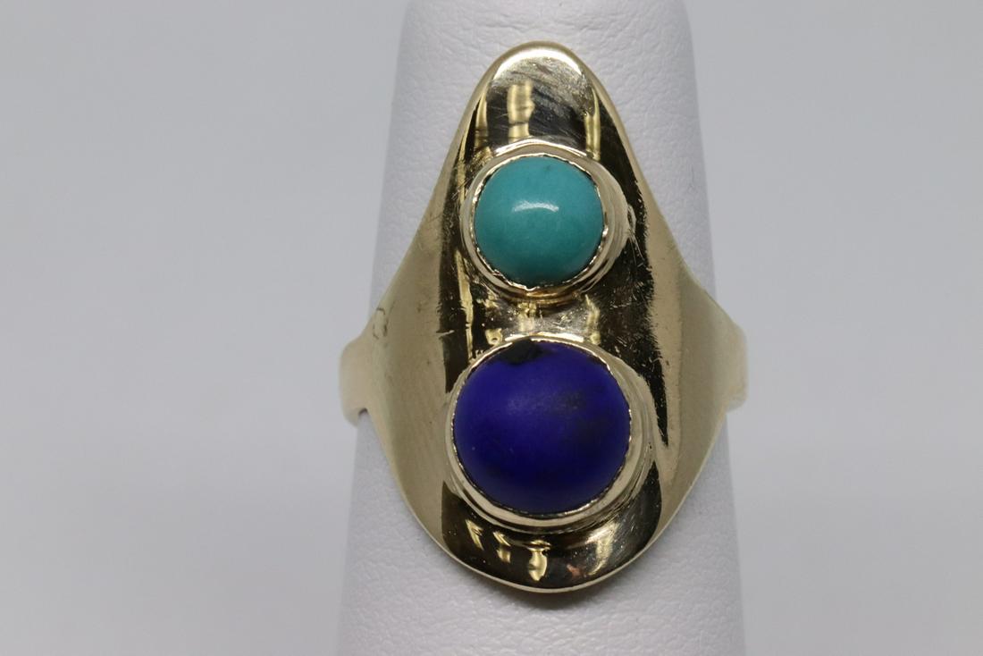 A Luminous 18kt Yellow Gold Ring with Central Cabochon Turquoise and Turquoise Beads, 9.21 grHIGH END GEMS & JEWELS LTD$1,1503 days Left