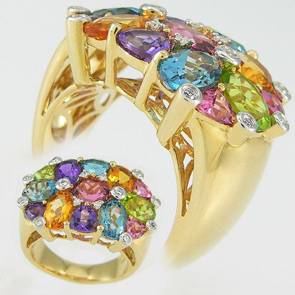 14KT MULTI GEM STONE RING 6 + CARATS SZ 7