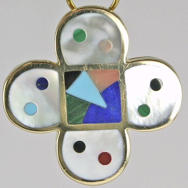 14KT Multi-Inlay Clover Pendant