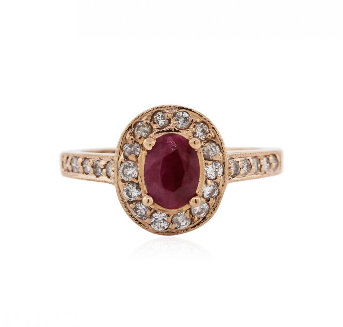 Sold14K Rose Gold 0.60 CTW Ruby & Diamond RingRef:2022809075 Gold Content:14K Rose Gold For people:Women Total Item Weight :3.04grams Ring Size:7.25US Main Stone:Ruby Number of stones:1 Shape:Oval Carat Total Wt:0.42ct Clarity Grade:VS2 Color:ReSee Sold Price