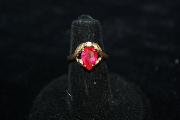 SoldAmazing 10KT Red Ruby Mother of Pearl RingBeautiful 10kt yellow gold, 0.60 ct red ruby, mother of pearl ring, size 6, 3.7 grams, 2.4 dwt.See Sold Price