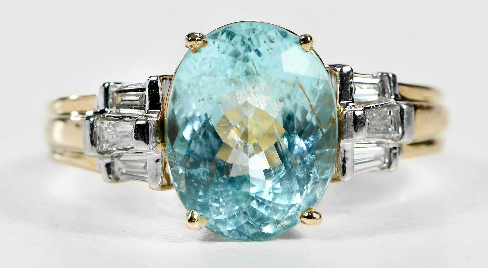 5.36 carat natural blue zircon baguette diamond ring 14kt gold**