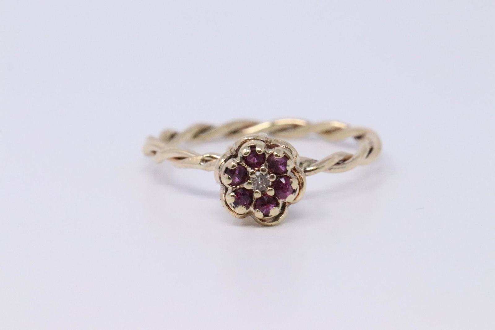 SoldVintage 14kt Ruby & Diamond Floral Ring, Sz. 9.25 , Signed S-G, 1960'sTitle: Vintage 14kt Ruby & Diamond Floral Ring, Sz. 9.25 , Signed S-G, 1960's Descritpion: Vintage 14kt Ruby & Diamond Floral Ring, Sz. 9.25 , Signed S-G, 1960's. S & G Jewelry is out of Buffalo, NY aSee Sold Price