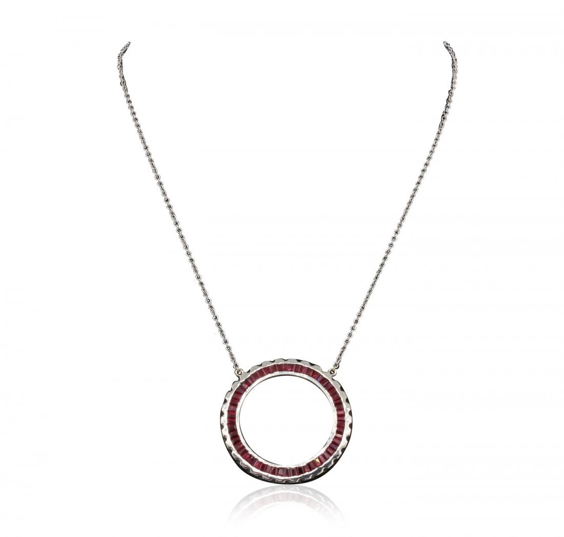 SoldNatural 9.02 ctw Ruby & Diamond Necklace 10K White GoldREF#-56T7ZRetail Replacement Value: $5500.00 Natural 9.02 ctw Ruby & Diamond Anniversary Necklace 10K White Gold Lot No: 11402-1795-10W One gemologically tested Natural 9.02 ctw Ruby & Diamond AnniSee Sold Price