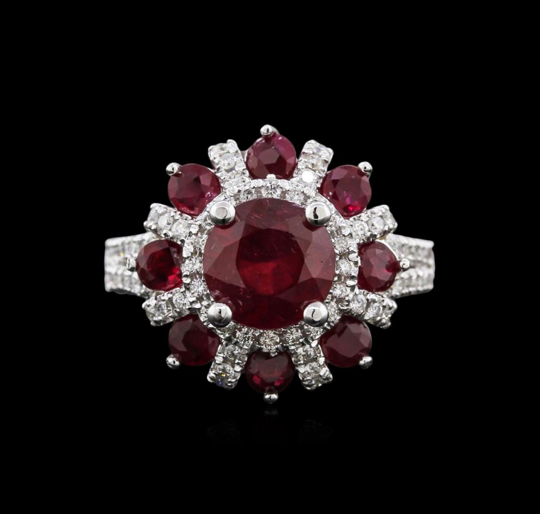 14KT White Gold 4.24ctw Ruby and Diamond Ring