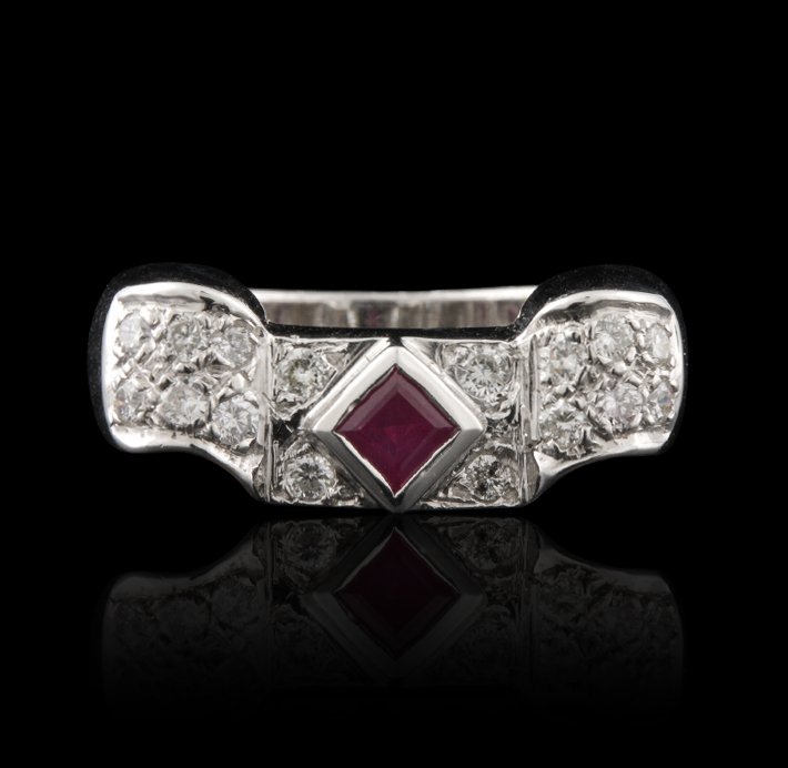 14KT White Gold Ruby & Diamond Ring GB1237