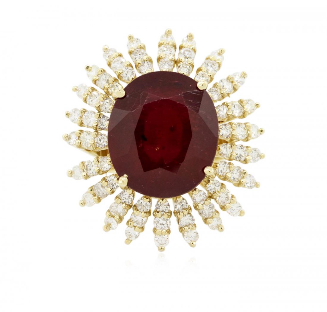 14kt Yellow Gold 10.60 Ctw Ruby And Diamond Ring