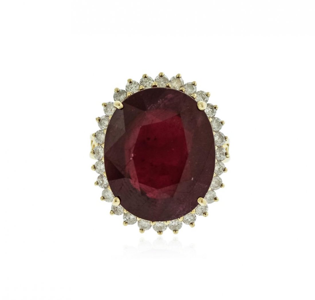 14K Yellow Gold 13.27ct Ruby and 1.96ct Diamond Ring