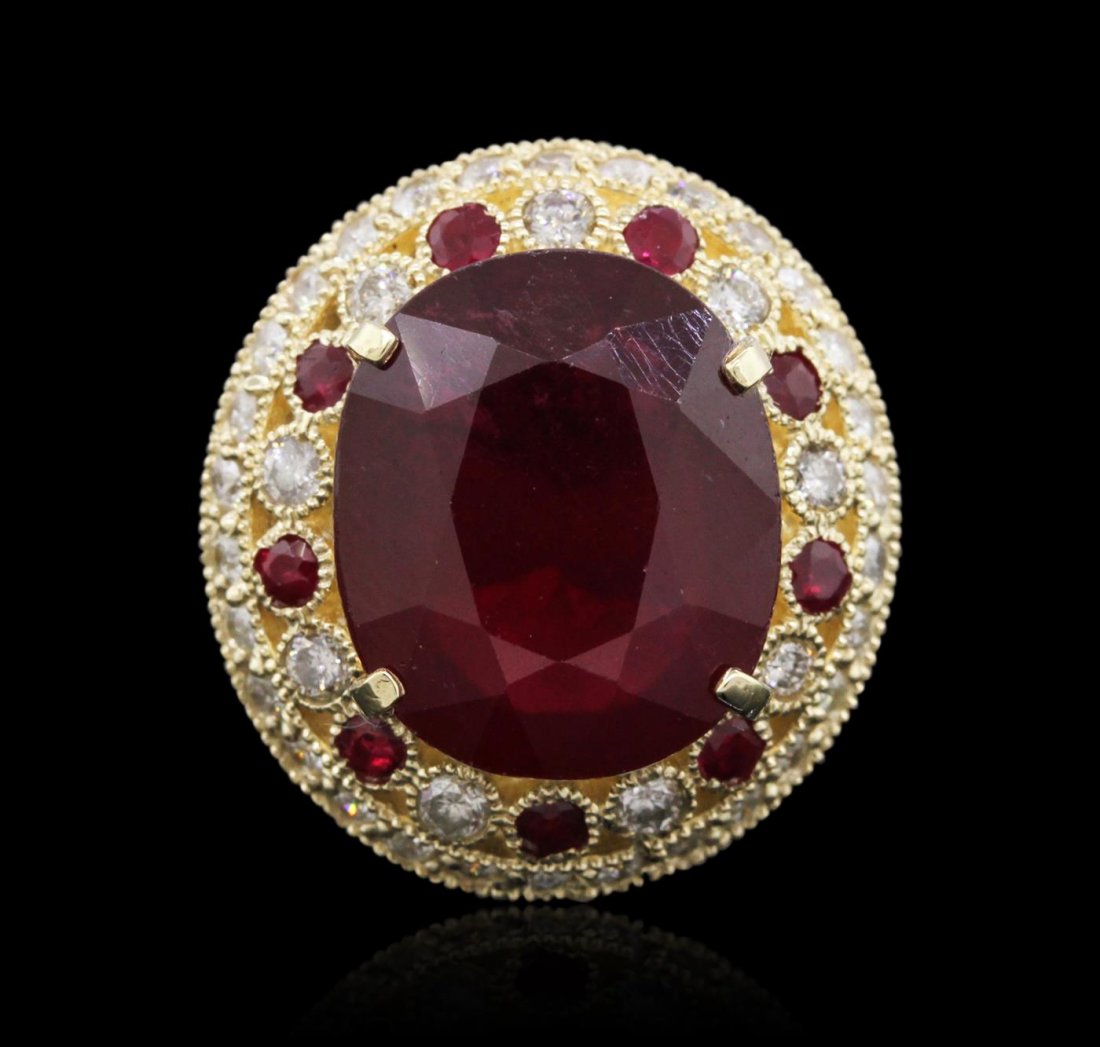 14K Yellow Gold 13.27ct Ruby and 1.96ct Diamond Ring