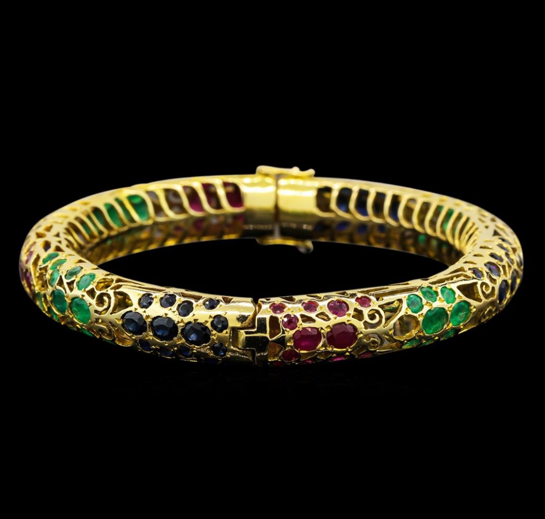 14k Yellow Gold Open Design Bangle Bracelet 4.10ct Diamonds & Gemstones EstateDiamond Depot4.3(10)$2,9502 days Left