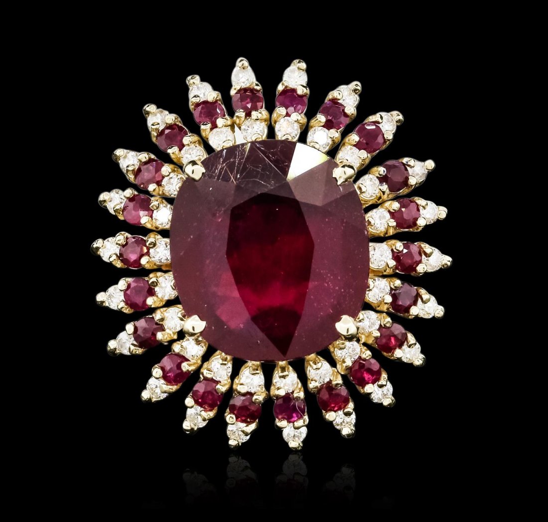 14K Yellow Gold 13.27ct Ruby and 1.96ct Diamond Ring