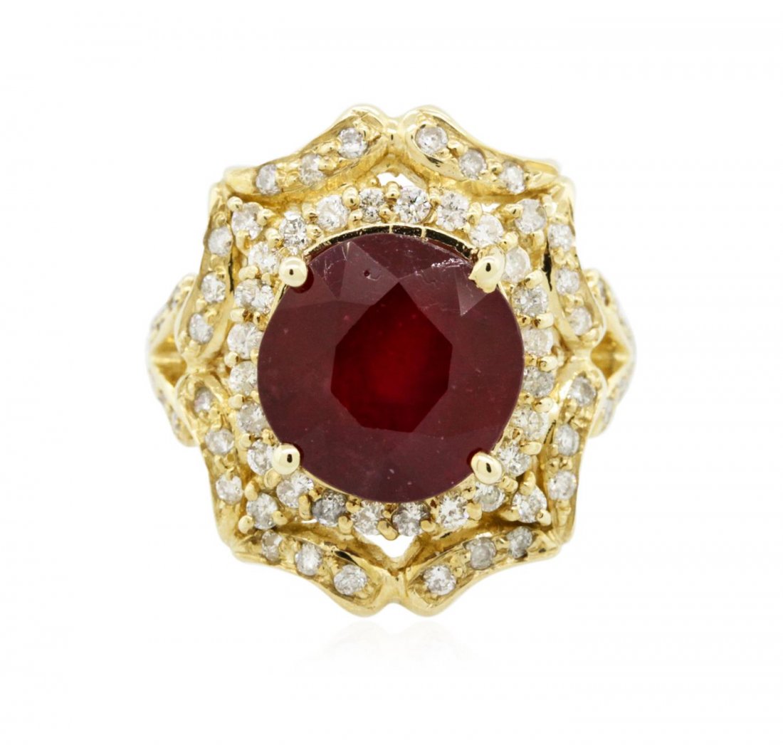 14k Yellow Gold 5.31ct Ruby 3.51ct Diamond Ring
