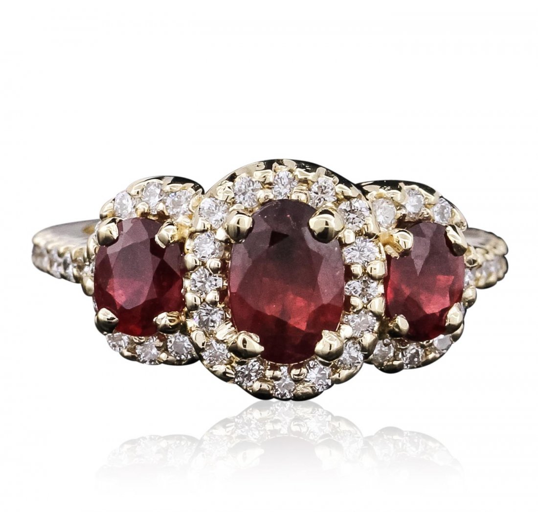 Sold14Kt Yellow Gold Ruby & Diamond Ring.14Kt Ladies Yellow Gold Ruby & Diamond Ring. Ring has 1 Ruby in the center & 12 Diamonds Round. Ruby weight :0.90ct. Diamonds Weight: 0.55cttw. Ring size: 6.00. Total weight: 3.10 Grams. #AYSee Sold Price