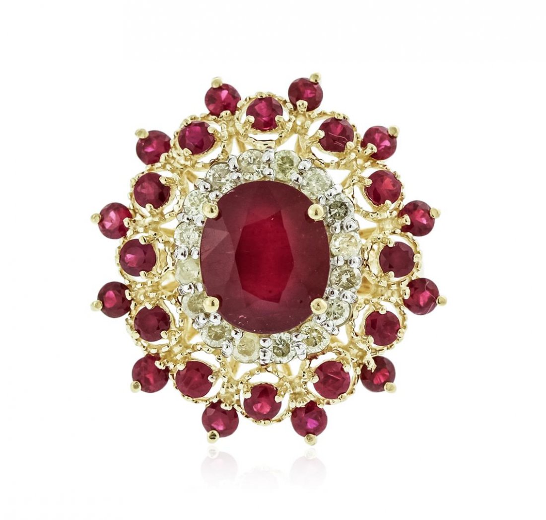 14kt Yellow Gold 3.28 Ctw Ruby And Diamond Ring