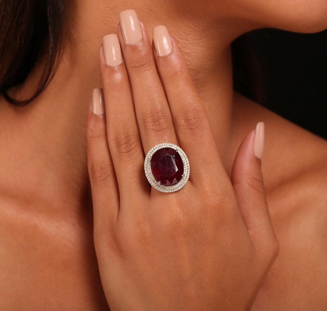 SoldLADIES 14KT YELLOW GOLD RUBY & DIAMOND RINGM. Fabrikant & Sons, Inc. 21st Century Trading LLC. Set with four prongs is one transparent moderately purplish red Pear cut (teardrop) Natural Ruby approx .50ct, 8 single cut natural diamonds, 12 redSee Sold Price