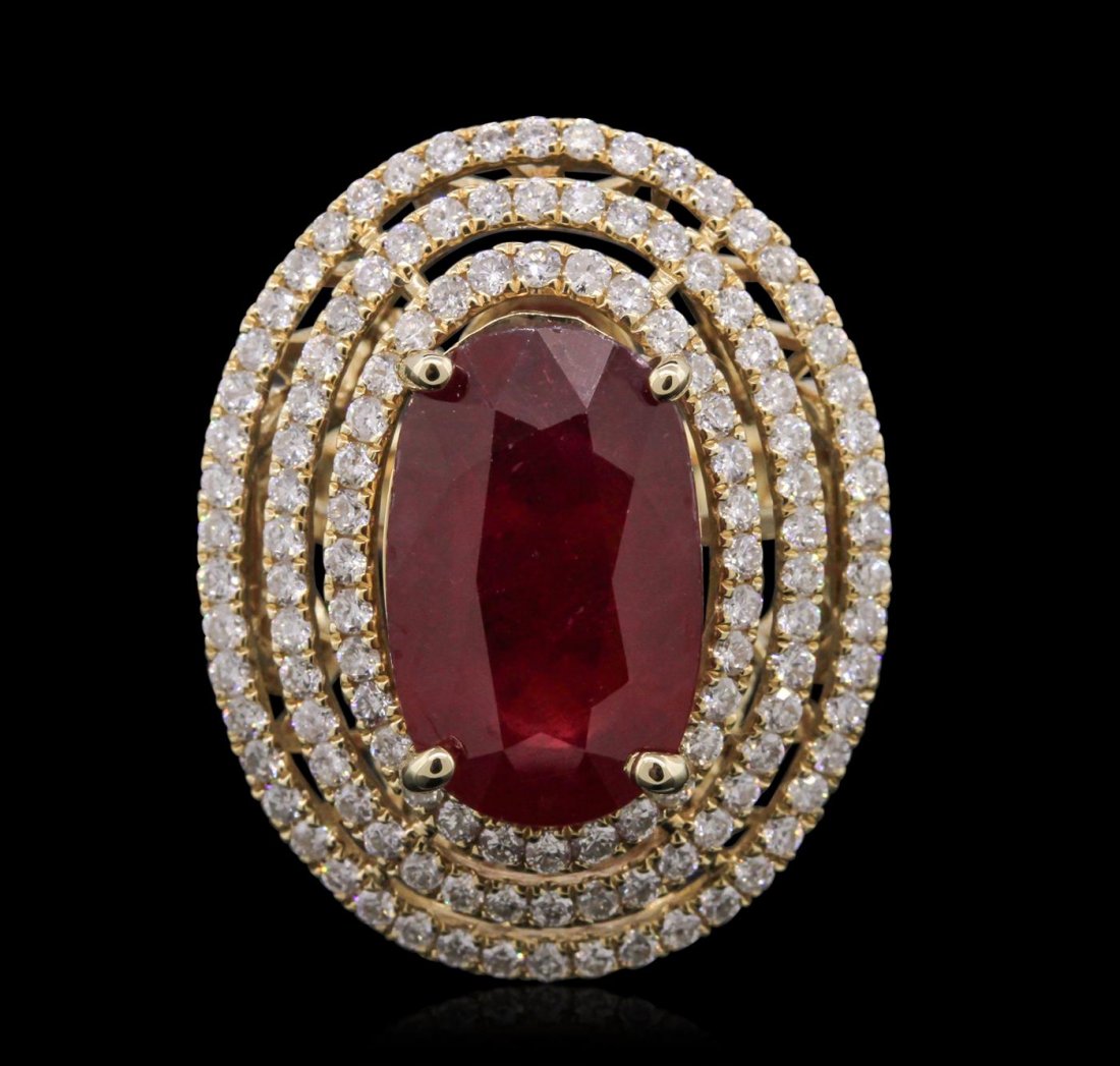 14K Yellow Gold 9.85ct Ruby and 1.34ct Diamond Ring