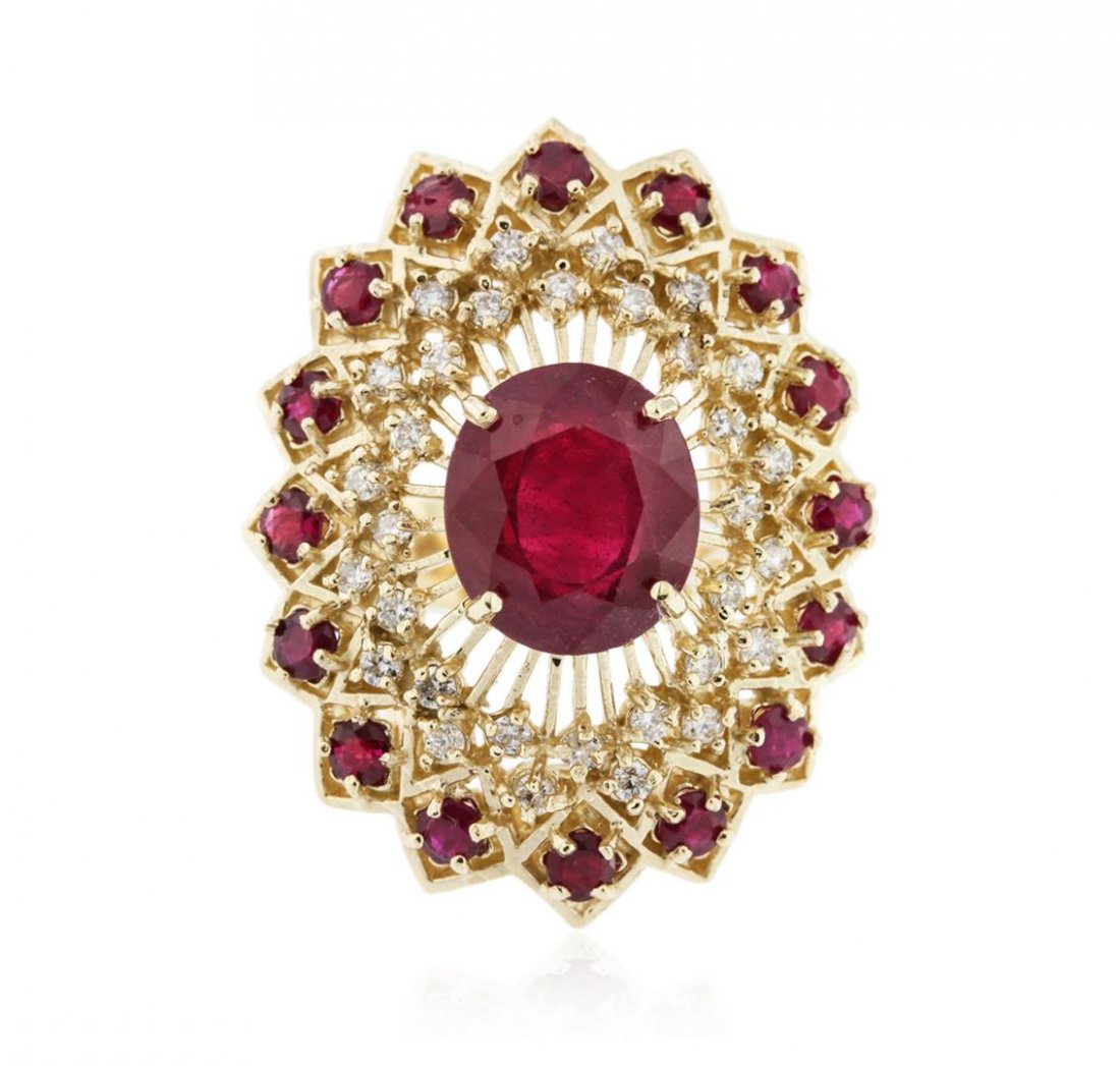 14K Yellow Gold 6.82ct Ruby and 1.51ct Diamond Ring