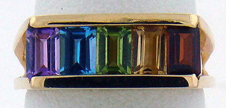 14KT Y.G. MUTIGEMSTONE RING 2.50CT