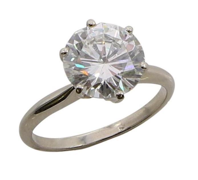 Sold14K WHITE GOLD & DIAMOND SOLITAIRE RING14k yellow gold diamond ring solitaire featuring an approximate 10.76mm by 10.85mm by 6.32mm round brilliant transitional cut diamond weighing approximately 4.50 cts of VS-2 clarity and faint yellow cSee Sold Price
